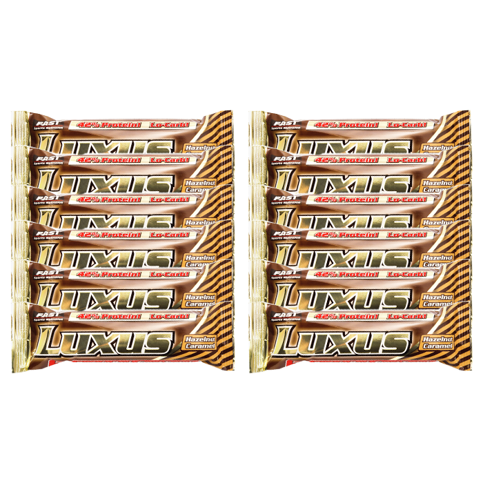 LUXUS- HIGH PROTEIN SNACK BAR från FAST Proteinbar med mjölkchokladsmakande överdrag. Välj mellan smakerna mintchoklad och hasselnöt/kola.