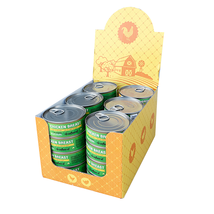 24 x Chicken Breast från Nobles består av 24 burkar med 100 gram saftig kycklingbröstfilé per burk, kommer i fyra goda smaker!