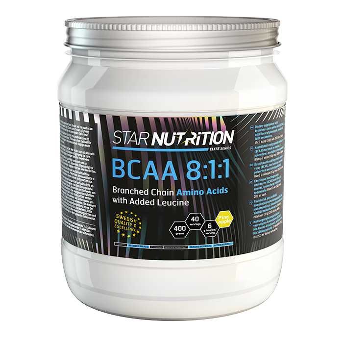 Star Nutritions välsmakande BCAA 8:1:1 – stimulerar din muskeluppbyggnad och hämmar muskelnedbrytningen! Finns i tre goda smaker.