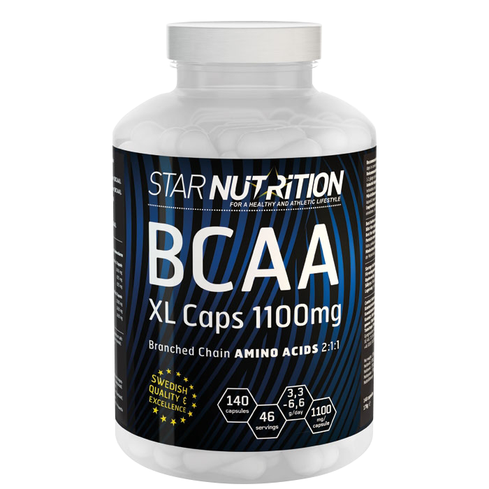 BCAA XL-caps från Star Nutrition är en högdoserad BCAA-produkt i kapselform. Varje dosering innehåller hela 3300 mg grenade aminosyror i fri form.