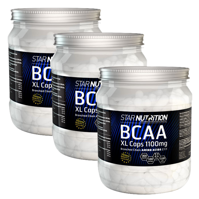 3 x BCAA XL-caps, 300 caps: En högdoserad BCAA-produkt i kapselform! Innehåller hela 3300 mg grenade aminosyror i fri form per dosering!