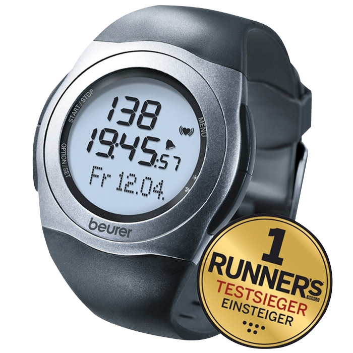 Prisbelönt i Runners world. EKG, exakt pulsmätning, maxpuls, kalori- och fettförbrukning, larmklocka & stoppur, vattensäker 30m.