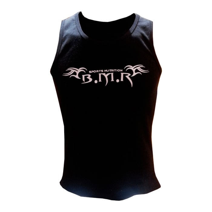 Coolt svart BMR-linne med tight passform och en vit BMR-logga på bröstet.