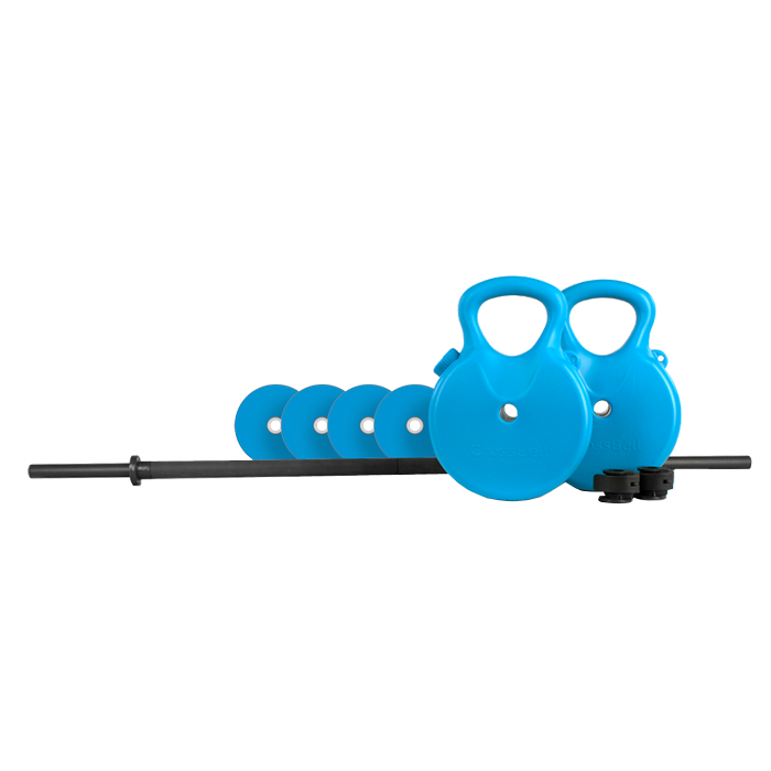 Med CrossBell system kan du med några enkla justeringar utföra kettlebell-, hantel- och skivstångsövningar. Systemet är kompakt och lätt att ta med!