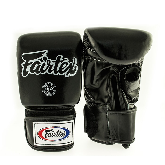 Genomtänkt boxningshandske med öppen tumme från Fairtex. TGO3 Bag Glove Open Thumb passar perfekt för säck- och klinchträning.
