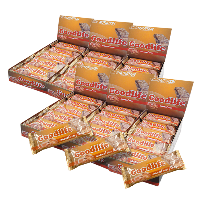 90 x Goodlife, 50 g: Proteinbar med prisbelönt smak! Behändigt format och bra näringsvärde, varje bar ger ca 190 kcal fördelat över 16 g protein och 20 g kolhydrater!