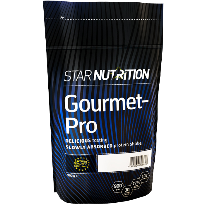 Gourmet-Pro från Star Nutrition är speciellt utvecklad för att ge en god och fyllig proteindrink även då den blandas i vatten. Perfekt som mellanmål eller till kvällen!