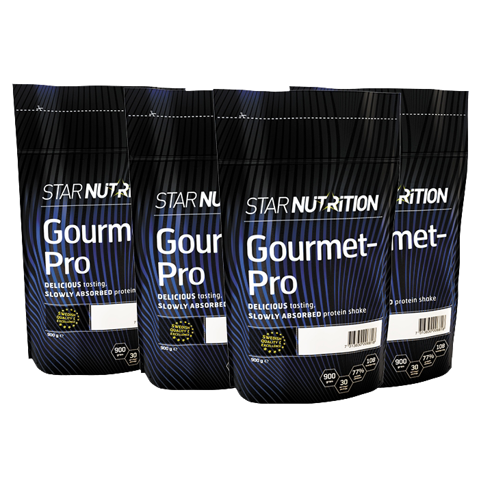 4 x Gourmet-Pro, 900 g: Ett extra gott proteintillskott från Star Nutrition! Särskilt framtagen för att ge en god och fyllig drink även vid blandning med vatten.