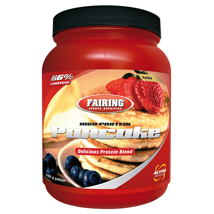 High Protein Pancake Blend – Proteinpannkakor när de är som godast! Lättlagad pannkaksmix från Fairing med 66% högvärdigt protein och fräsch vaniljarom!