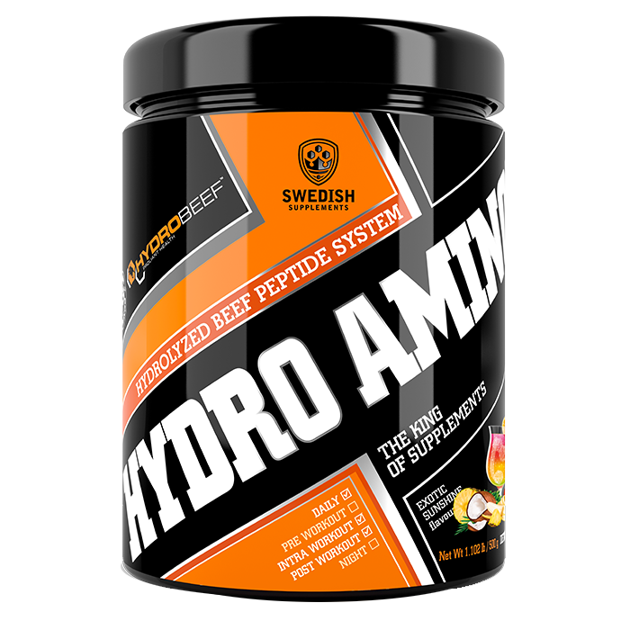 Hydro Amino Peptide från Swedish Supplements innehåller Hydro BEEF TM, ett fullvärdigt aminosyrakomplex från svenskt nötkött.