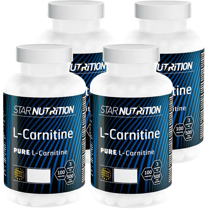 4 x L-Carnitine. 100 caps: L-karnitin är en aminosyra som bildas i små mängder i kroppen och som behövs för en normal fettförbränning.