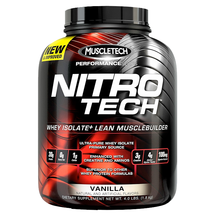 NITRO-TECH® från Muscletech är ett vetenskapligt framtaget vassleproteinisolat för kvalitativ muskelökning med en formula som stödjer tillväxt, styrka och prestation!