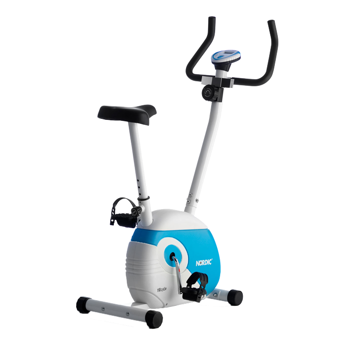 Nordic 110 är en kompakt träningscykel som är perfekt för hemmet! Cykeln är utrustad med en minidator som bland annat registrerar tid, sträcka och kaloriförbrukning!