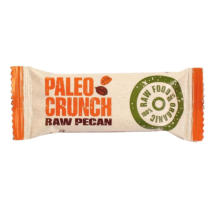 Paleo Crunch Raw Pecan – Välsmakande energibar som innehåller ekologiska nötter, frukter och frön. Glutenfri och 100% raw med en välsmakande pekannötsmak!