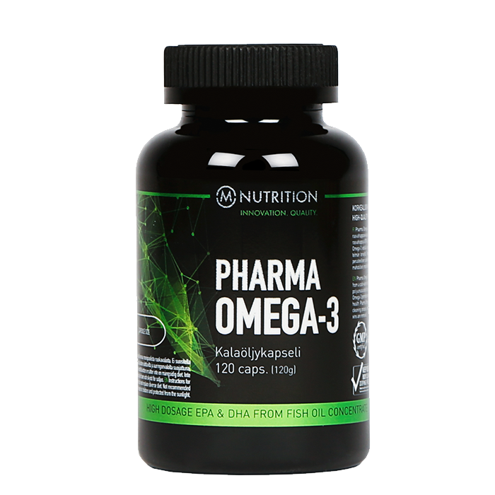 M Nutritions Pharma Omega-3 är ett komplett omega-3-tillskott. Varje kapsel ger 1 gram fiskolja med ett högt innehåll av EPA och DHA.