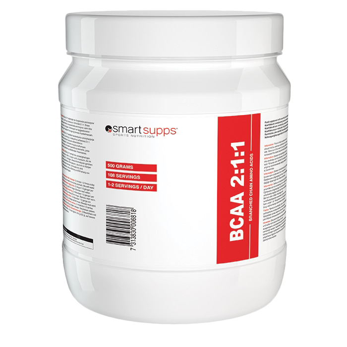 SmartSupps BCAA 2:1:1 är ett välsmakande och extremt prisvärt tillskott med de grenade aminosyrorna L-Leucin, L-Valin och L-Isoleucin i förhållandet 2:1:1!