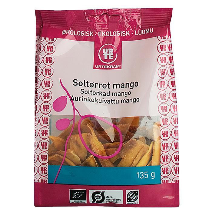 Soltorkad mango EKO – Sötsura bitar av soltorkad mango från Urtekram. Gott snack och perfekt till maträtter och dessert!