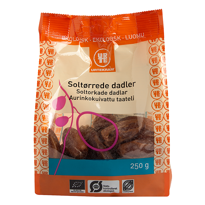 Soltorkade dadlar EKO – Ekologiska, soltorkade dadlar med saftig konsistens. Passar bra som tilltugg eller tillbehör till din müsli!