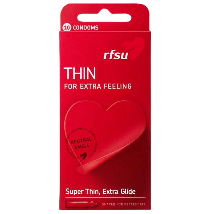 Thin är en extra tunn kondom, tillverkad av latex, naturgummi. Thin är transparent och glidmedelsbehandlad.