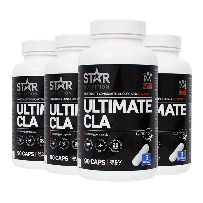 4 x Ultimate CLA, 90 caps: Tillskott i kapselform som innehåller 100% konjugerad linolsyra (CLA) i form av kvalitetsråvaran Clarinol™!