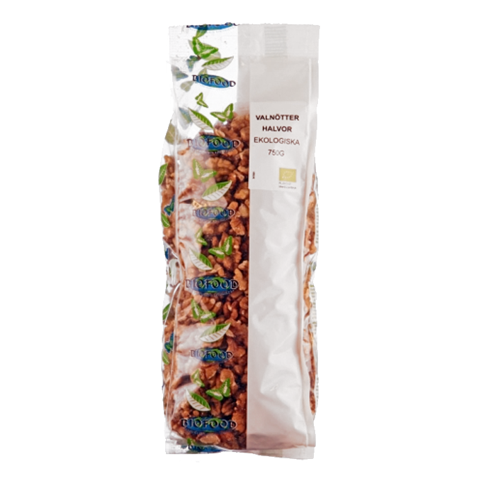 Valnötter halvor EKO – Valnötshalvor från Biofood. Ekologiskt odlade med högt Omega-3 värde. Nyttigt snack med nyttiga fetter!