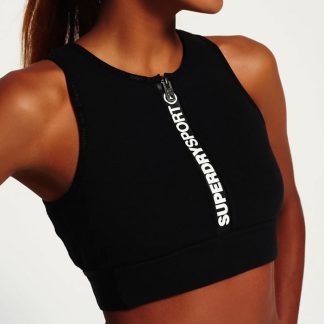 Superdry Gym Scuba Crop topp för tjejer. Kort topp med hög krage. Dragkedja fram med logotyptrycket Superdry Sport.