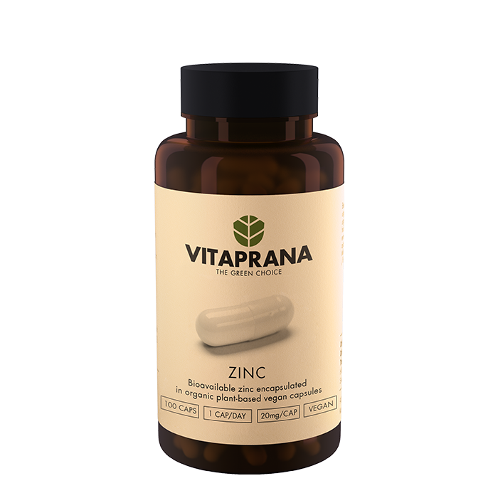 Vitaprana Zinc innehåller zink från zinkcitrat, organisk källa med mycket god biotillgänglighet. Vitaprana Zinc ligger i veganska ekologiska kapslar, ger 20mg zink/kapsel
